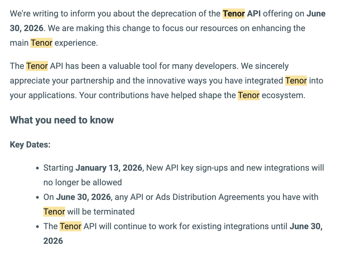 We've migrated from Tenor over to Klipy